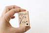 Paper poetry stamp featuring the phrase "Made with love" in cursive